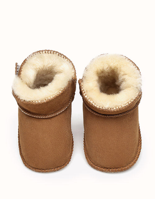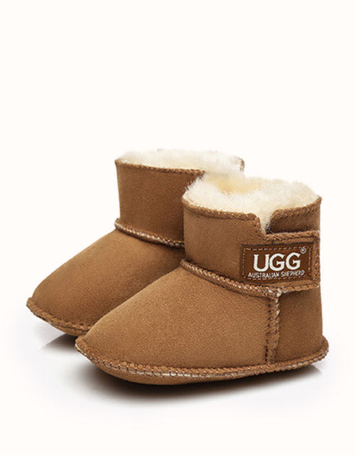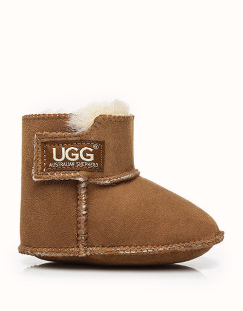 Keep your bub warm throughout winter with our Australian Shepherd Baby Erin Booties! With a Velcro tab and sheepskin interior, these ugg boots will be easy to pull on and off and will allow you to adjust how tight the shoes are, ensuring they stay on.