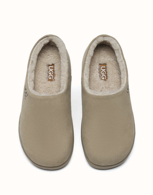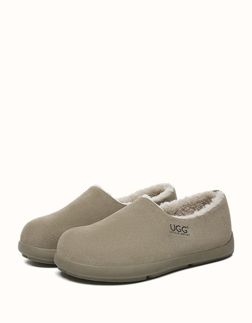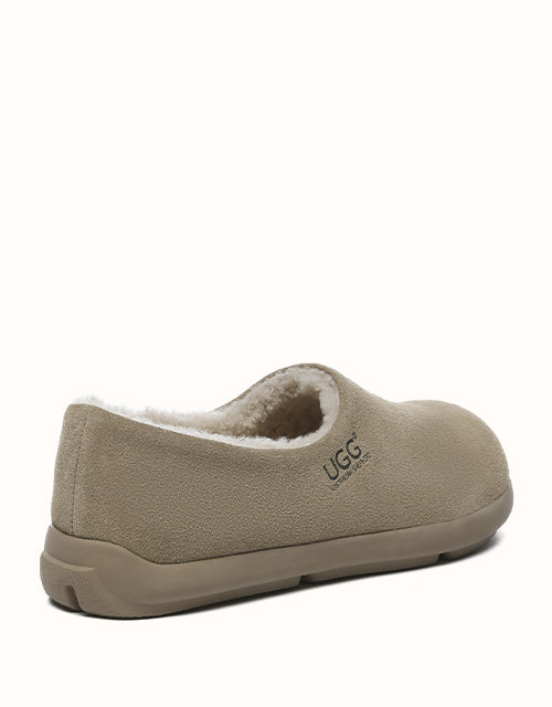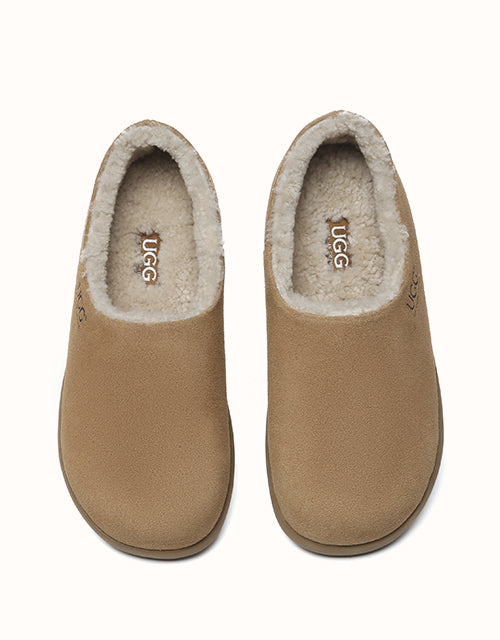 Crafted from cow suede and lined with soft sheepskin wool, the Australian Shepherd Classic Slippers offer warmth, comfort, and breathability. The wear-resistant TPR sole ensures grip and stability for indoor or quick outdoor use. A clean, timeless design makes them perfect for everyday wear or gifting.