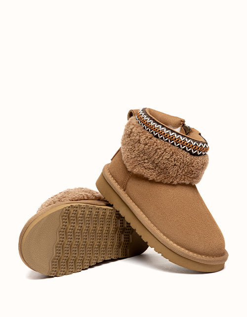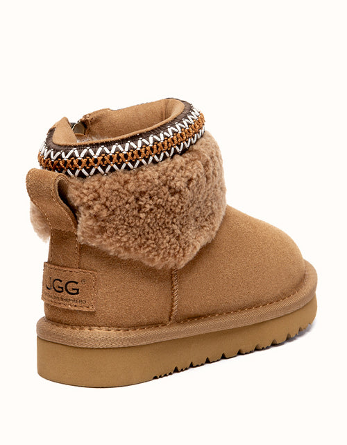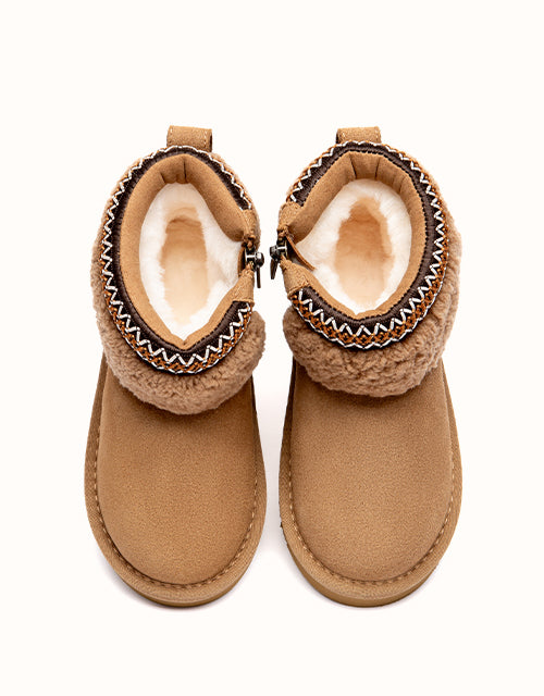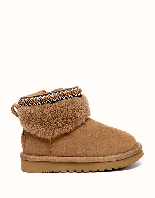 The AUSTRALIAN SHEPHERD® Brunel Kids Boots wrap little feet in soft sheepskin warmth and comfort. Crafted from premium cow suede with a fluffy wool collar and side zip, they’re easy to wear and perfect for chilly days. Lightweight and breathable, these mini UGGs keep kids cozy through every playful step.