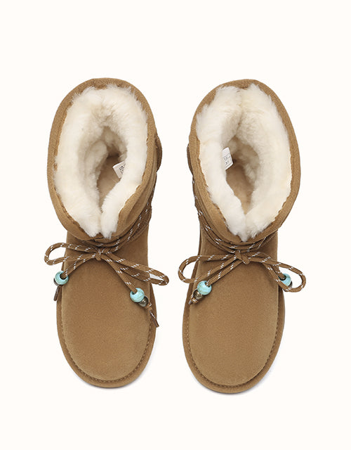 Tie up your style with the Australian Shepherd Carlos Fashion Boots, delivering two distinct looks in one versatile boot. The front-split shaft allows you to fold it down for a relaxed vibe or wear it upright for a polished, edgy appearance. Available in chestnut and sand, the subtle blue detail in the decorative lace wraps adds a fashionable accent to enhance your wardrobe.