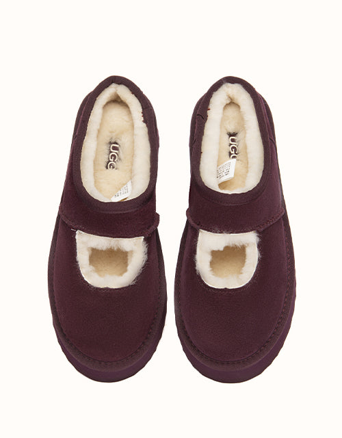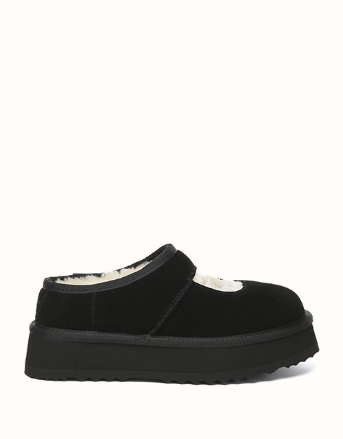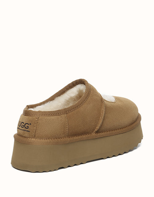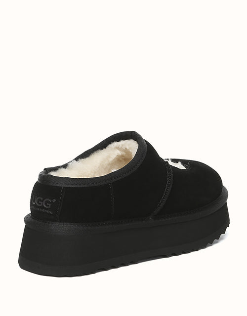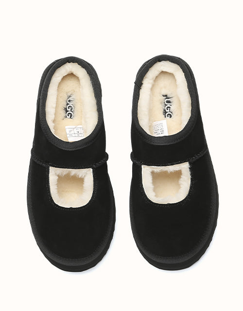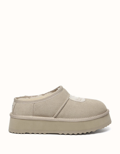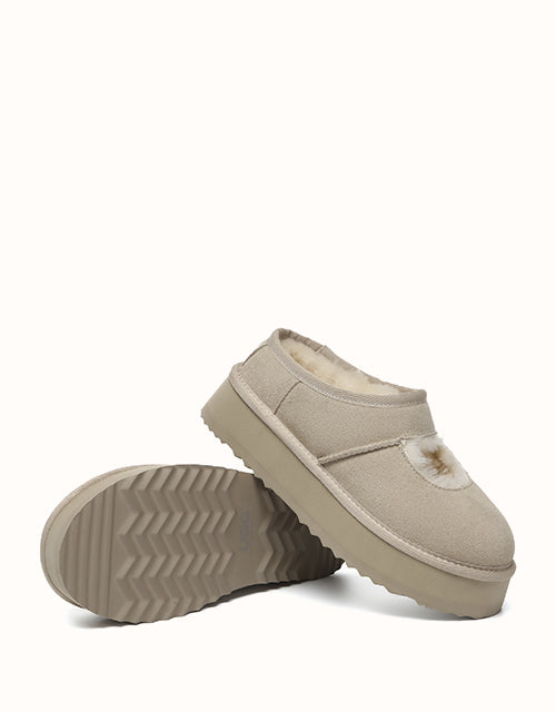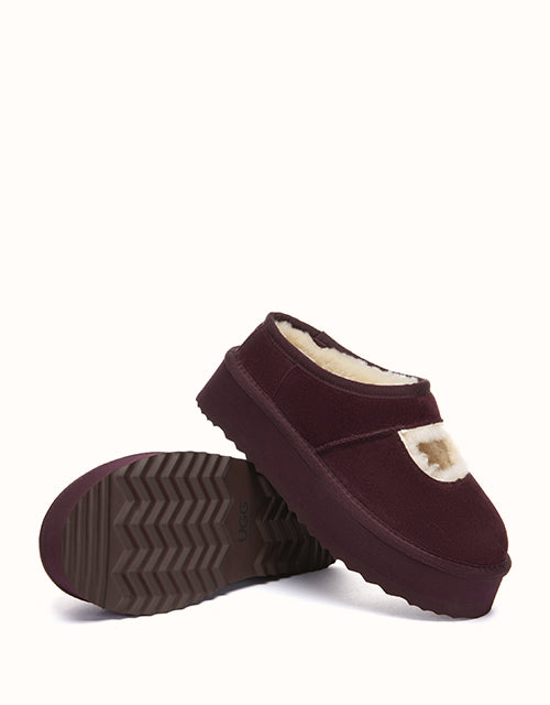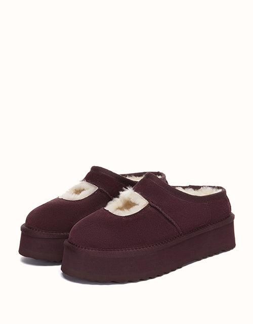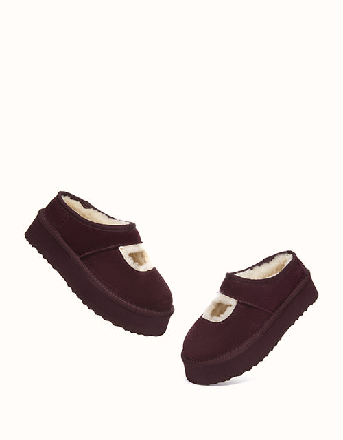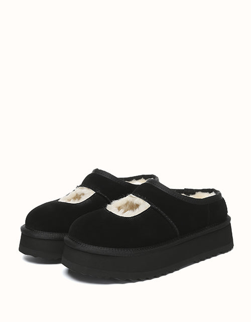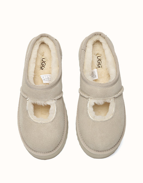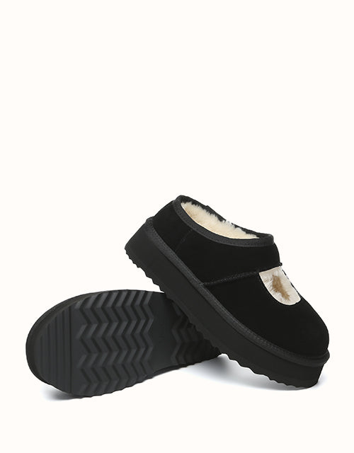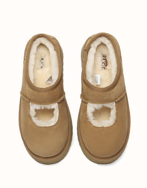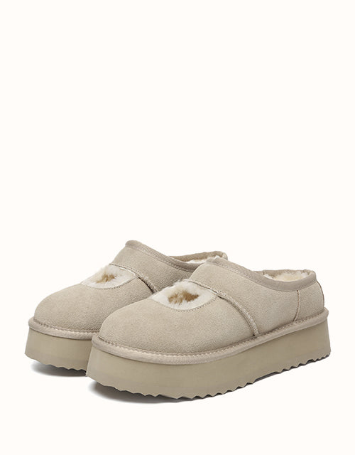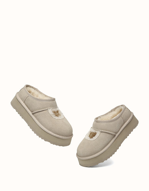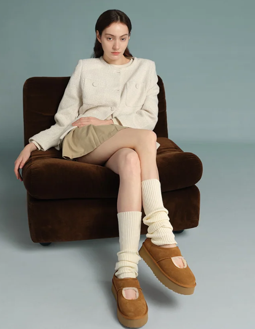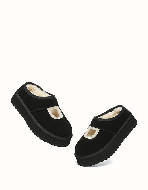 Genuine sheepskin lining keeps your feet comfortably warm in winter and cool in summer, while square-shaped cut-outs reveal the soft wool for a playful touch. The 4cm platform sole adds extra height without weighing you down, and the soft suede exterior pairs perfectly with the cozy interior for all-day comfort. Lightweight EVA soles provide cushioning and stability, making these shoes ideal for relaxing at home, quick outings, or gifting to someone special — a perfect balance of warmth and style.