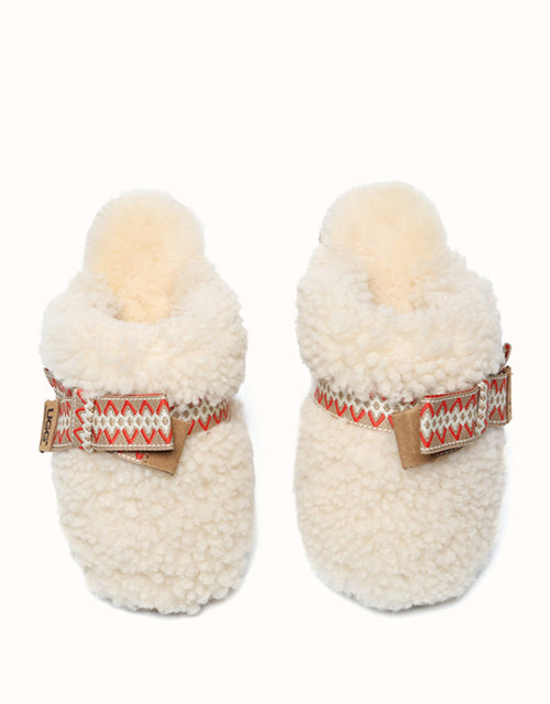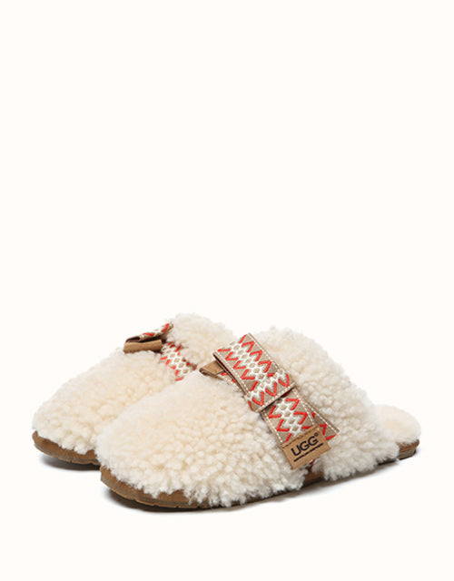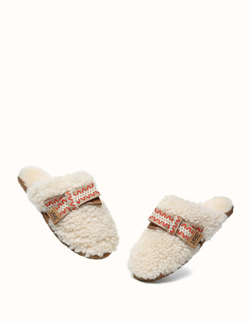 Featuring a Fair Isle-inspired bow and soft shearling upper, these slip-on mules exude effortless charm and comfort. Crafted from premium Australian Merino sheepskin, they offer a luxuriously soft, skin-friendly feel and all-weather warmth. The durable rubber sole provides excellent grip and support, ensuring comfort for both indoor lounging and outdoor strolls.