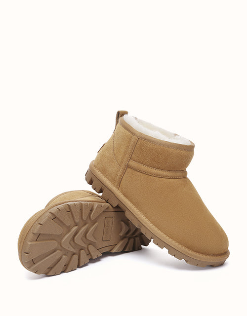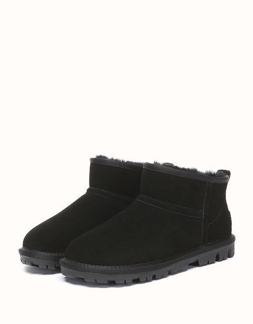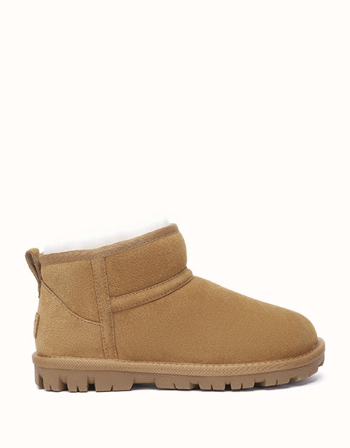 The Australian Shepherd Short Boots are crafted from easy-to-clean cow suede and lined with plush sheepskin wool for lasting warmth and comfort. A thick EVA sole with anti-slip grip ensures stability on various surfaces—perfect for indoor wear or light outdoor use. Simple, practical, and ideal for gifting.
