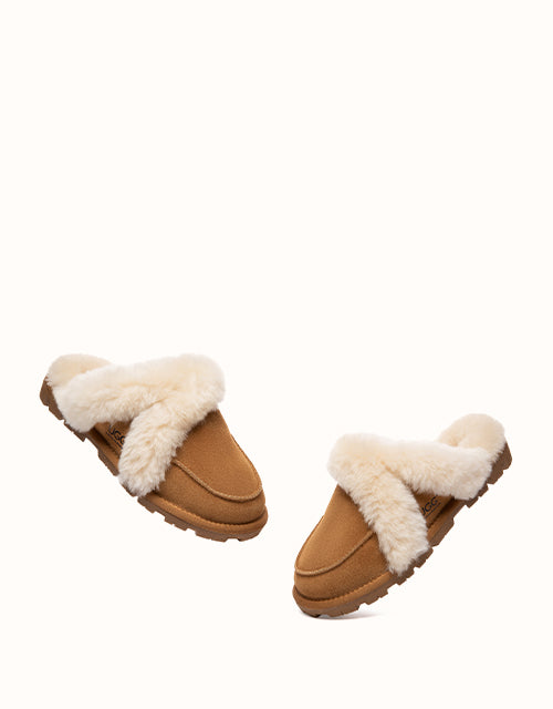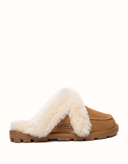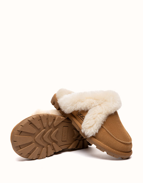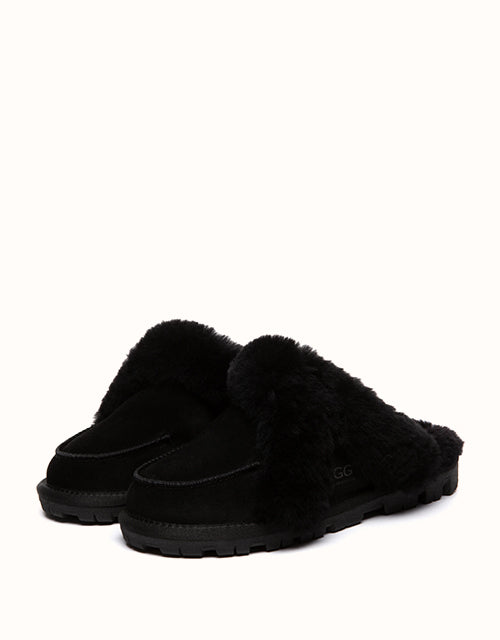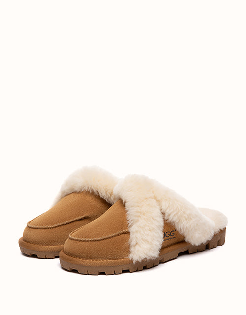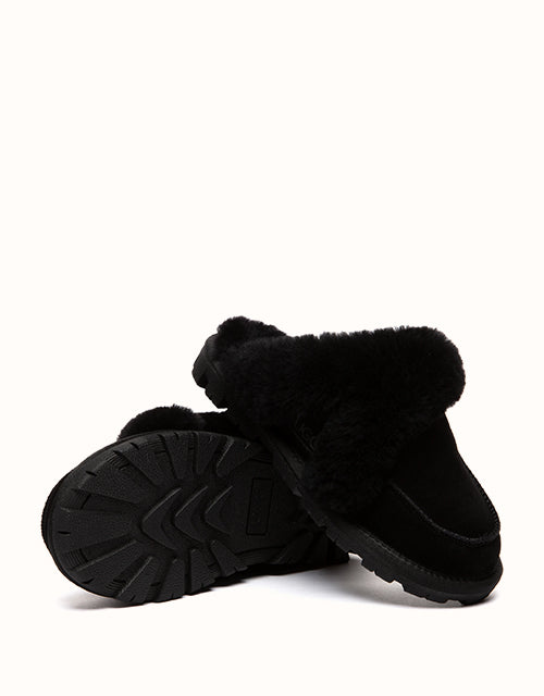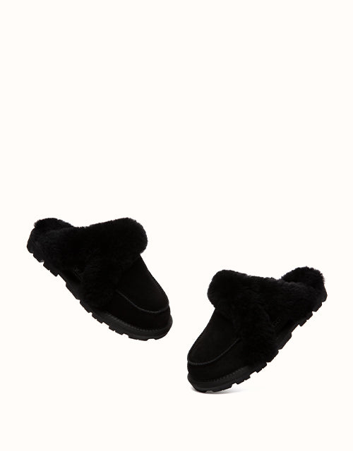 Effortless and elegant, the AUSTRALIAN SHEPHERD® Doria Slippers bring laid-back warmth to everyday living. The open-back clog design and fluffy sheepskin collar create a relaxed yet polished look. With a cushioned sole and breathable lining, they transition smoothly from quiet mornings to cozy evenings.