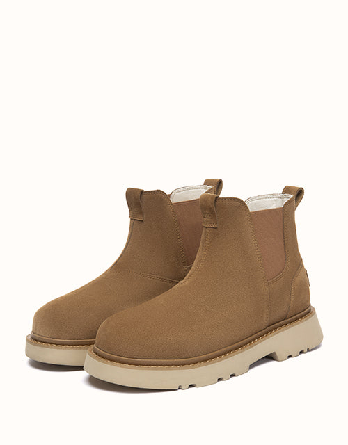 Designed for everyday ease, the Dravor Chelsea Boots feature soft cow suede with a clean, low-ankle silhouette. Finished with a lightweight EVA sole and an easy slip-on design, they offer relaxed comfort and understated style for daily wear.