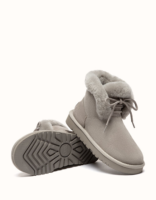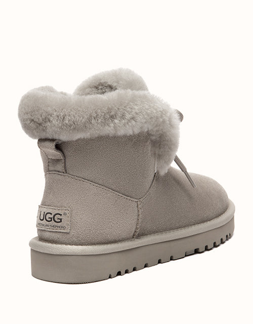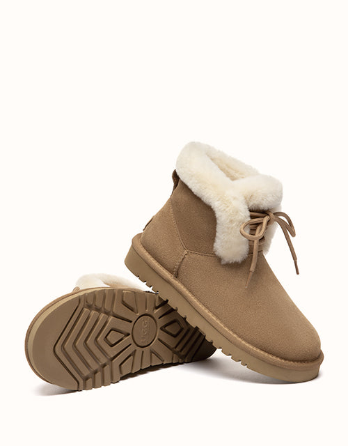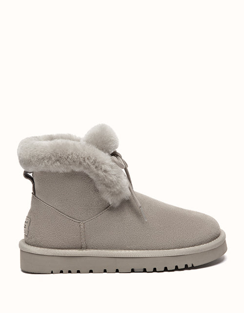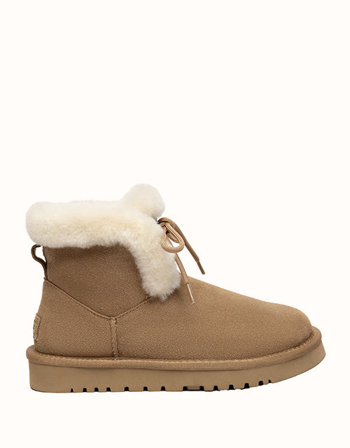 Designed with a soft wool-trimmed collar and delicate bow detail, the Dreva boot brings a cosy charm to everyday winter wear. Crafted from smooth cow suede and lined with plush sheepskin, it offers warmth, comfort and effortless style for both indoor lounging and casual outdoor outings.