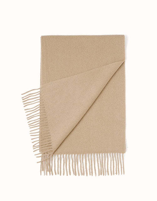 Crafted from 100% Australian sheepskin wool, this plain scarf offers natural warmth without the weight. The soft, airy texture makes it comfortable for all-day wear, while the clean silhouette pairs effortlessly with both casual and refined winter looks. A versatile essential designed for effortless layering throughout the cooler seasons.