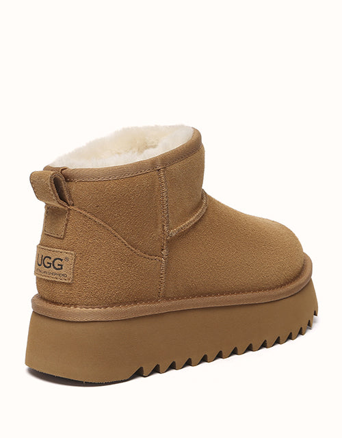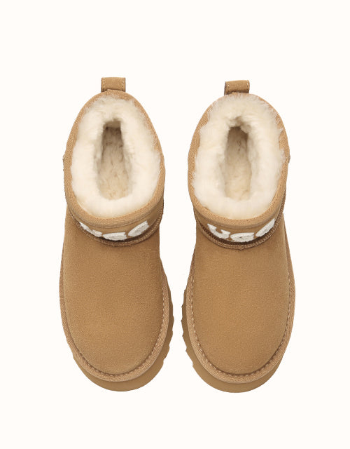 The Australian Shepherd Helia Platform Ankle Boots offer a fresh twist on the classic style. Made with soft Merino wool for lasting warmth, they feature a lightweight short silhouette with bold 3D logo stitching. The platform sole adds both comfort and style, making them easy to pair with any outfit.