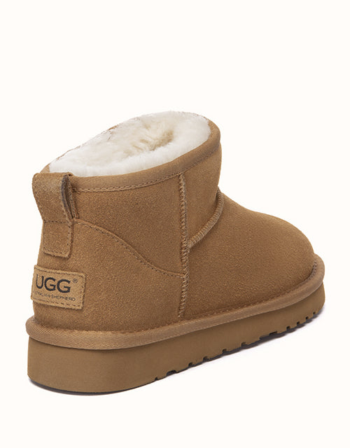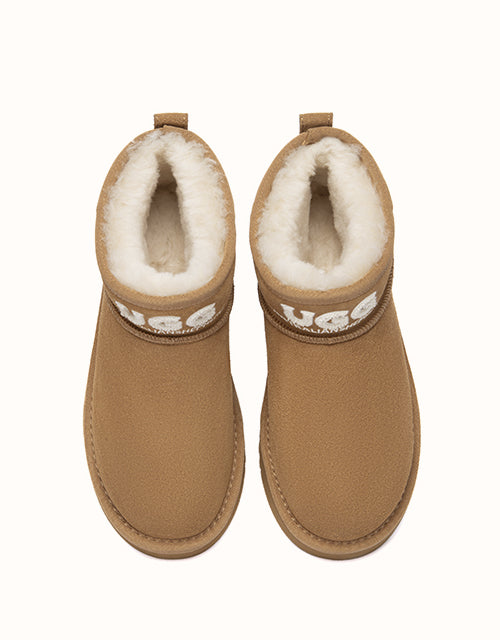 The EVERAU Helia Mini Ugg Boots keep feet warm and comfortable all day. Made from Australian sheepskin with breathable plush lining, they feature an ankle-height design and lightweight EVA sole for everyday wear.