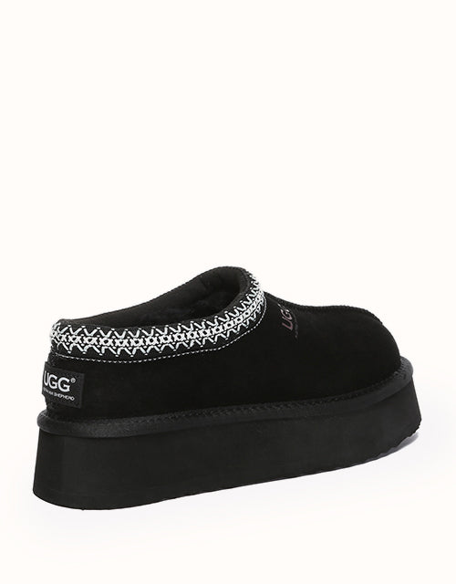 Channel your most stylish self with the Australian Shepherd Tazzy Hippie Platform Ugg Slippers. Designed with a tassy platformed sole, the trendy style offers sophistication and comfort all in one slipper! Featuring five neutral colorways, including chestnut and olive, these slippers can be styled with any ensemble while embodying undean rstated elegance.
