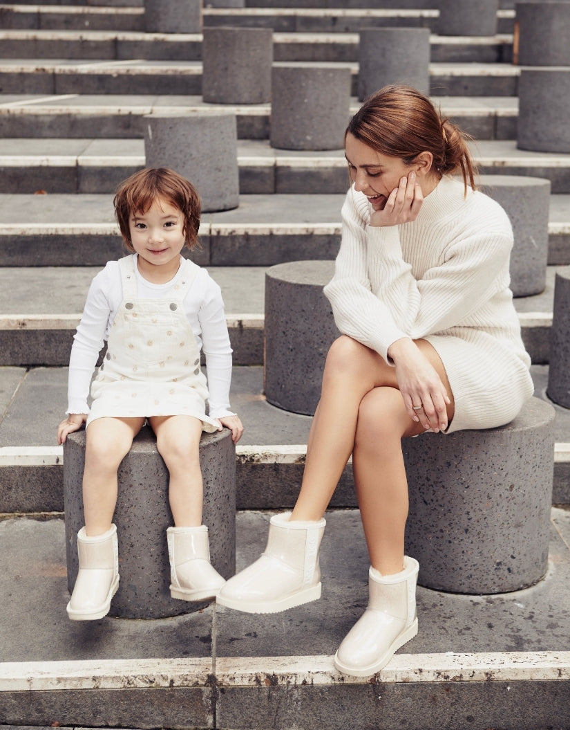 Crafted for all-weather comfort, the Australian Shepherd Kids Coated Neo Boots feature a clear waterproof TPU upper and plush sheepskin wool lining to keep little feet warm and dry. With a sturdy TPR sole for stability and durability, these boots are perfect for active kids during cooler, wetter seasons.