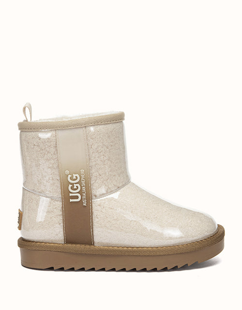 Crafted for all-weather comfort, the Australian Shepherd Kids Coated Neo Boots feature a clear waterproof TPU upper and plush sheepskin wool lining to keep little feet warm and dry. With a sturdy TPR sole for stability and durability, these boots are perfect for active kids during cooler, wetter seasons.