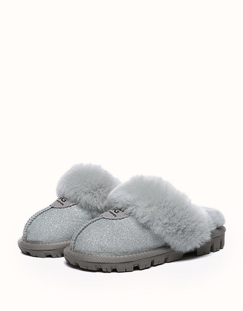 Keep little feet cosy and effortlessly stylish with the Australian Shepherd Shirley Kids Slippers. Designed with a hint of sparkle and available in two charming colourways, these slippers are ideal for chilly days at home. Lined with soft sheepskin, they offer natural moisture-wicking properties to keep feet dry while delivering unmatched comfort with every step.