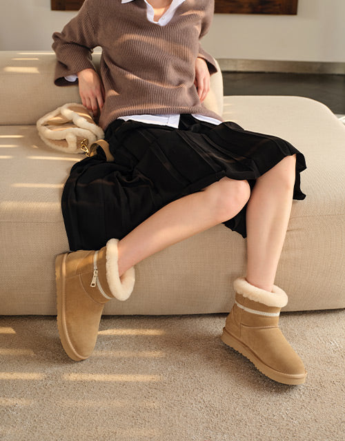 Combining everyday function with cozy comfort, this sheepskin boot is crafted from easy-to-clean cow suede and fully lined with natural Merino wool to keep your feet warm, dry, and breathable. The thick EVA foam sole features an anti-skid pattern, making it ideal for use on kitchen or bathroom floors. With its soft texture, moisture-wicking lining, and stable cushioning, it’s the perfect go-to for chilly mornings and relaxed evenings alike.