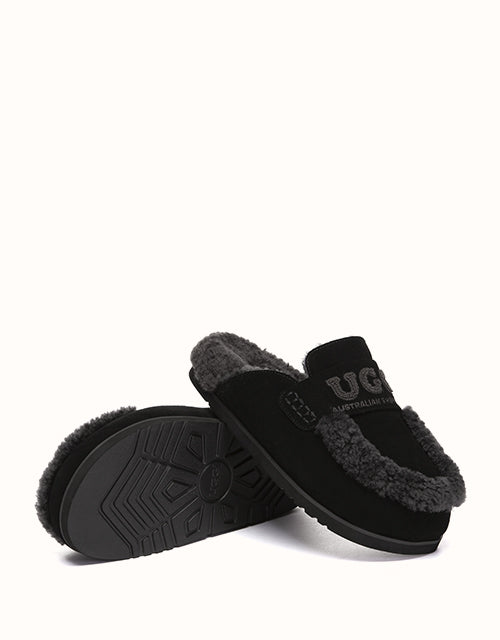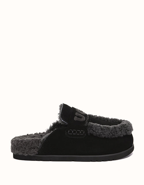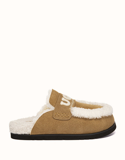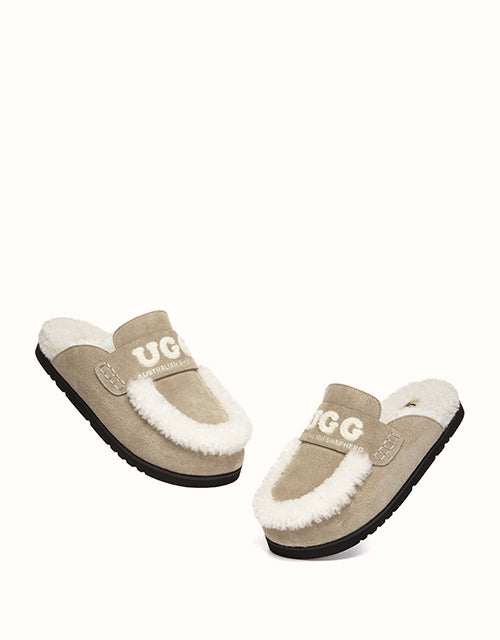 Made from easy-to-clean cow suede and lined with sheepskin wool, these shoes keep your feet warm and cozy. A plush faux fur insole and water-resistant EVA sole make them perfect indoors or out, finished with a woven UGG AUSTRALIAN SHEPHERD® label in a gift-ready box.