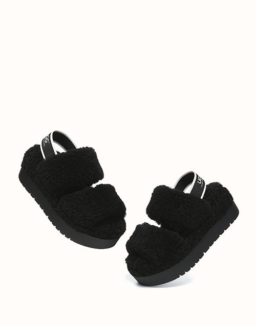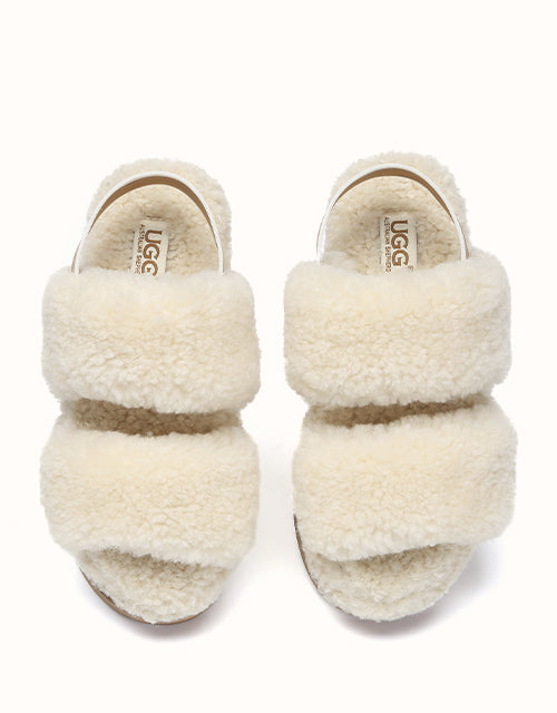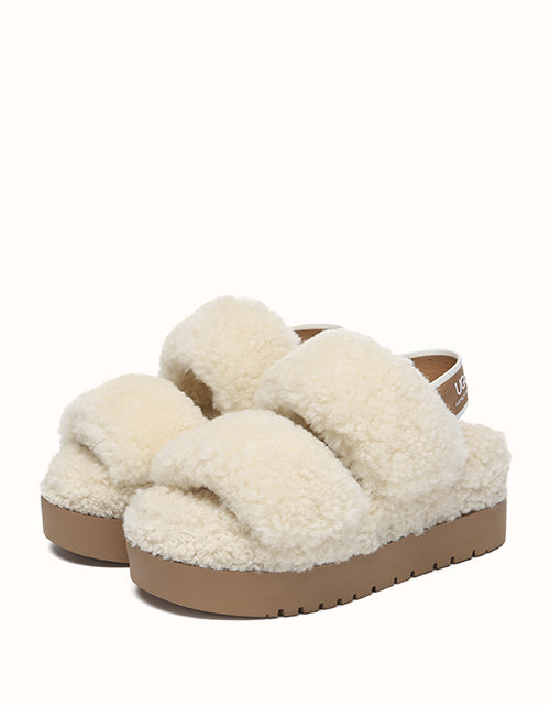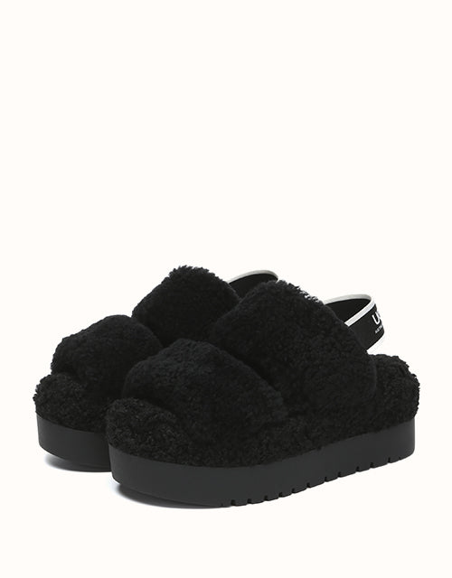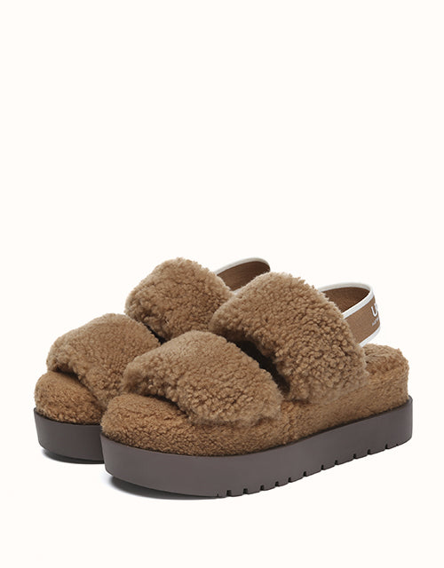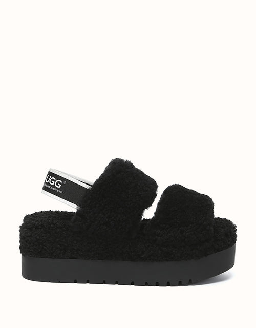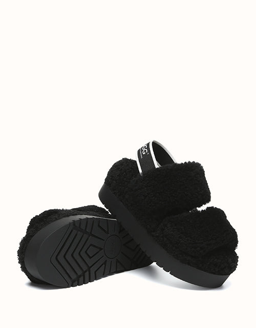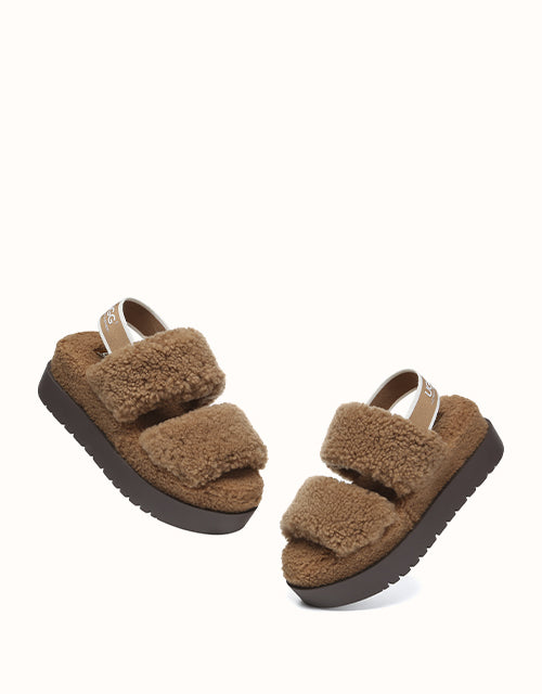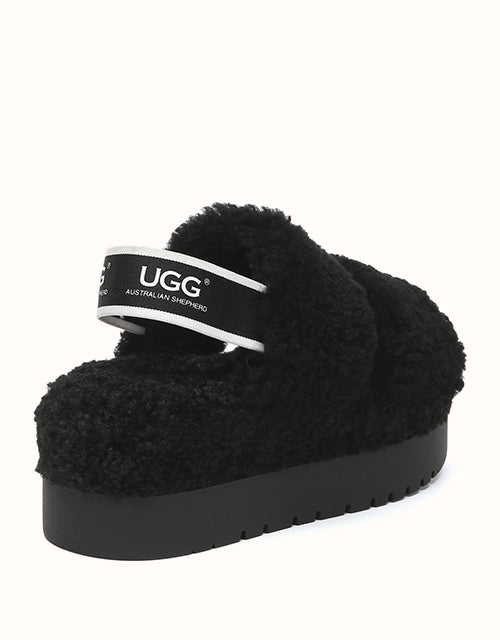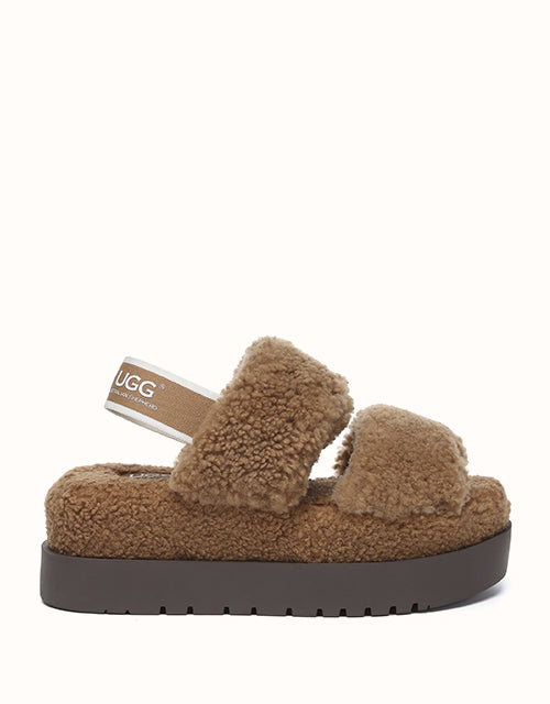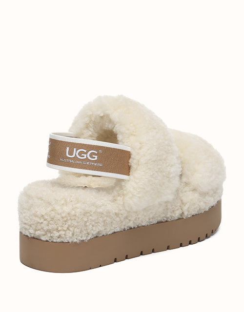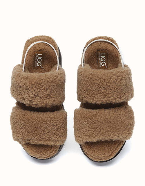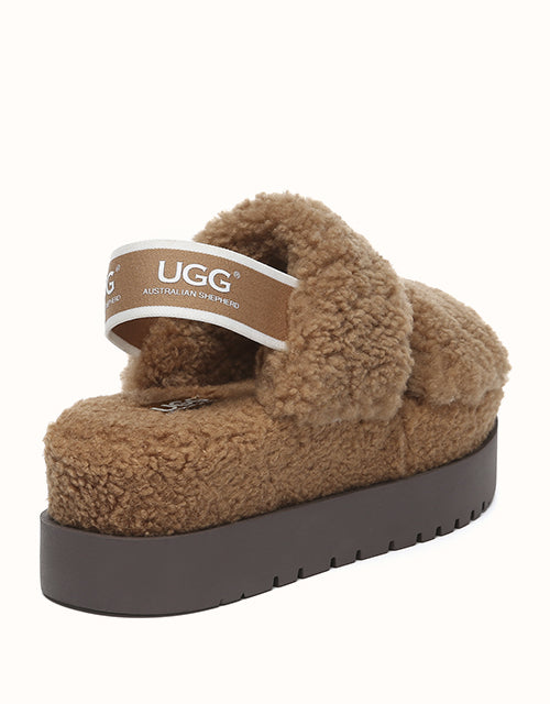 The Australian Shepherd Lyam Fluffy Platform Slides are crafted from premium Australian wool for all-day comfort and warmth. Designed with adaptive straps for a secure slip-on fit, they’re easy to wear at home or on the go. Available in chestnut, black, and cream.