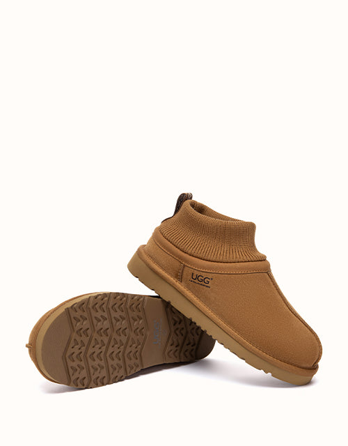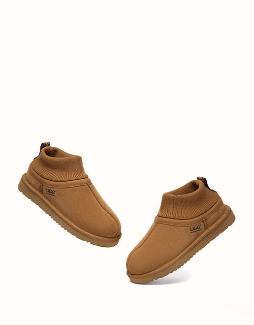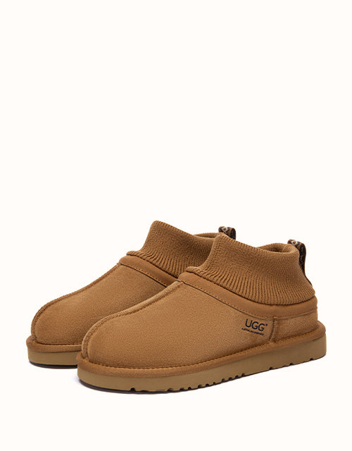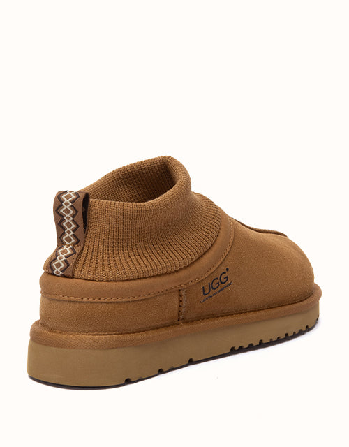 The AUSTRALIAN SHEPHERD® Margaret Ankle Slippers combine minimalist design with superior warmth. Made from premium cow suede and plush sheepskin wool, they offer breathable comfort and a flexible ankle fit. Finished with a cushioned EVA sole, perfect for effortless indoor or casual outdoor wear.