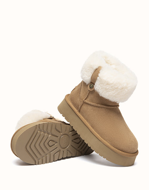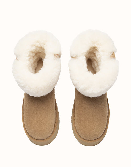 The Eleny Ankle Mini Platform UGG Boots offer cosy warmth in a refined, everyday silhouette. Crafted from soft cow suede and fully lined with plush sheepskin wool, they provide natural insulation with breathable comfort. The fluffy wool collar adds a gentle winter touch, while the lightweight mini platform sole delivers subtle lift and stable support for daily wear.