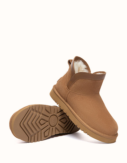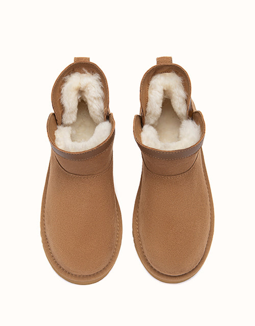 A timeless mini boot made for everyday winter wear. Mini Wintra with soft suede meets plush wool lining for a cosy feel the moment you slip in. The low-profile EVA sole keeps the look clean and easy, while still offering a stable, comfortable base for daily errands and off-duty styling.