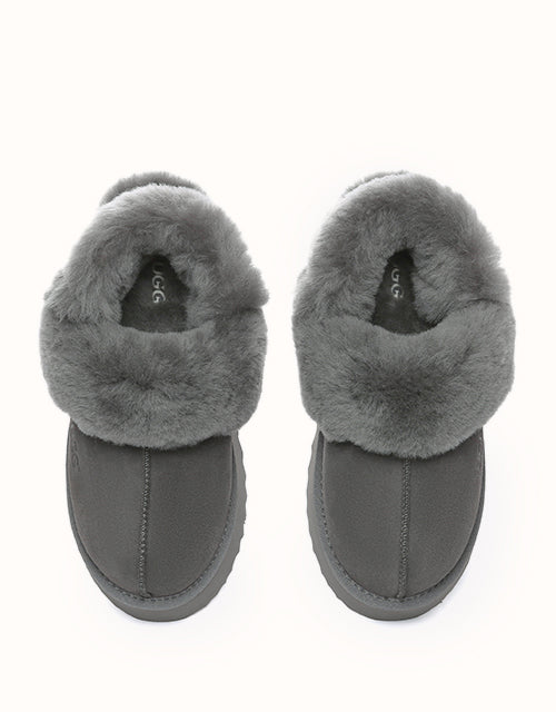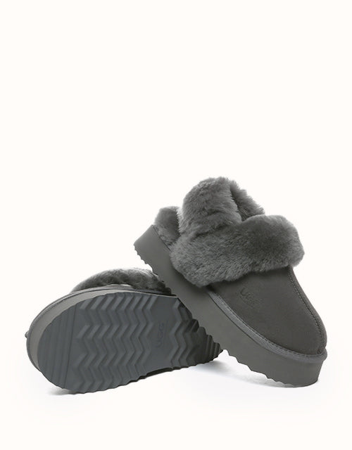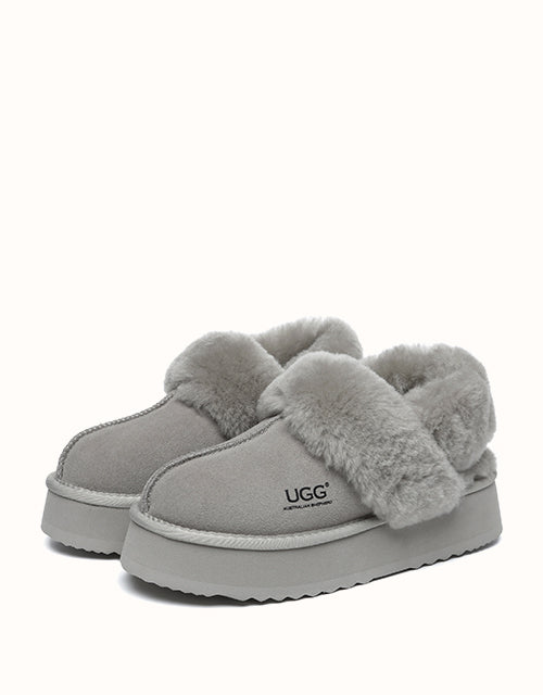 Wrap your feet in optimum warmth and softness with the Australian Shepherd Musa Slingback Platform Ugg Slippers. Made from fluffy sheepskin wool, these slippers promise cosiness all day long, while featuring moisture-wicking properties to keep your feet cool and dry. These platformed slippers will instantly elevate any winter look, and are designed with a removable, fluffy wool strap to offer versatile wear and prioritise comfort when you slip them on!