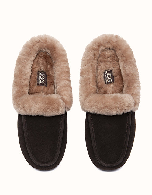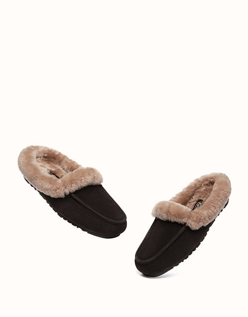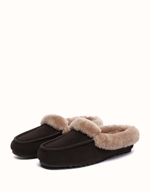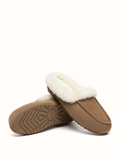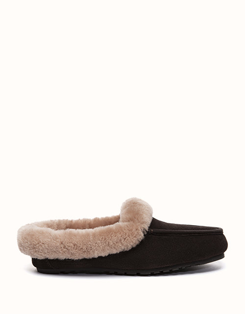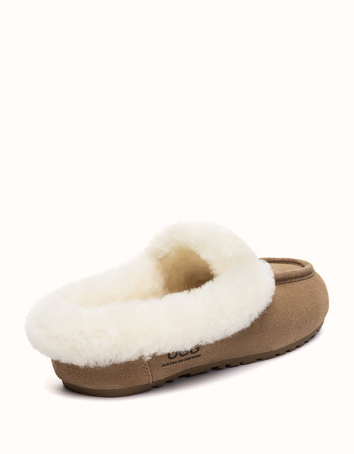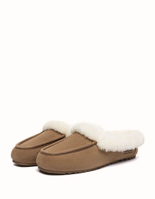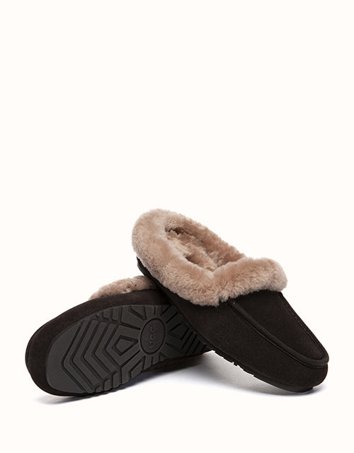 The AUSTRALIAN SHEPHERD® Slippers combine soft cow suede with a plush sheepskin wool lining for warm, breathable comfort. A sturdy rubber sole with anti-skid grip allows easy movement indoors and outdoors, while the slip-on shape keeps everyday wear relaxed and simple.