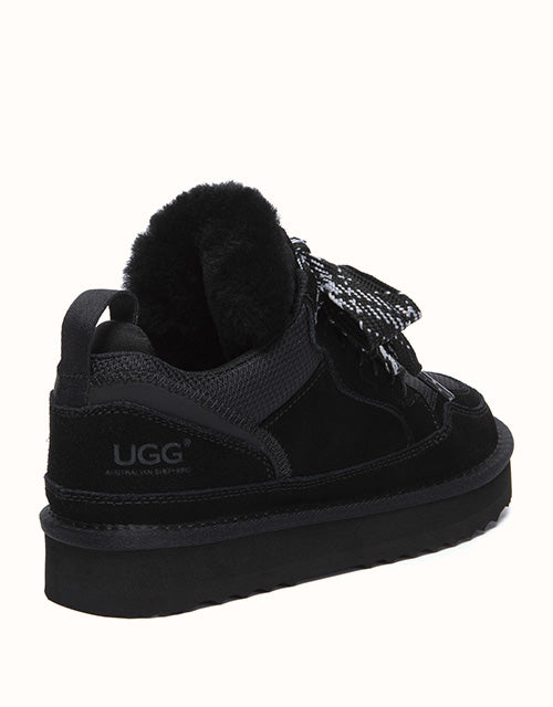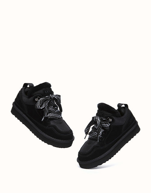 The Australian Shepherd Parkyr Lace Up Platform Boots blend the best of a classic mini UGG boot and a stylish sneaker. Made from premium Australian sheepskin, they naturally absorb moisture to keep your feet warm and dry. Featuring elevated laces and a modern design, these boots offer both fashion and function. Available in Chestnut and Sand, they’re a durable yet stylish choice for any outfit.