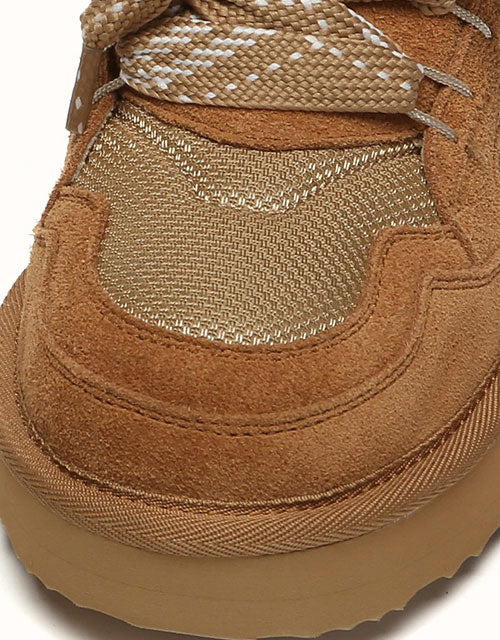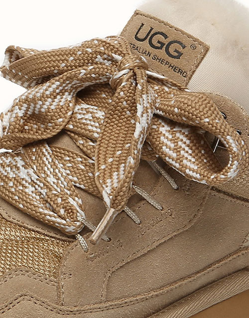 The Australian Shepherd Parkyr Lace Up Platform Boots blend the best of a classic mini UGG boot and a stylish sneaker. Made from premium Australian sheepskin, they naturally absorb moisture to keep your feet warm and dry. Featuring elevated laces and a modern design, these boots offer both fashion and function. Available in Chestnut and Sand, they’re a durable yet stylish choice for any outfit.