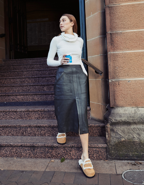 Crafted with premium Australian cowhide leather, these flats showcase the embossed UGG logo and subtle fleece accents, blending vintage charm with modern simplicity. The interior features soft Australian wool lining and faux shearling insoles for a cozy, skin-friendly feel that’s perfect for autumn and winter. Finished with a lightweight, flexible rubber sole featuring anti-slip tread, these flats offer stable footing and timeless style for any seasonal outfit.