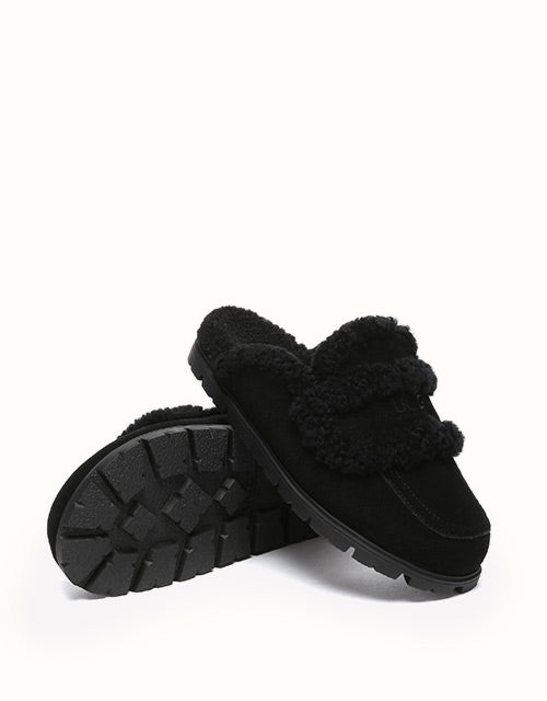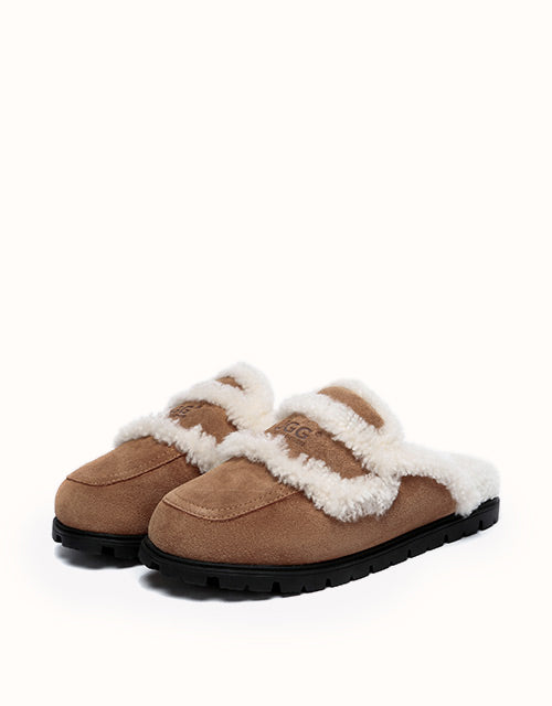 Crafted with premium Australian cowhide leather, these flats showcase the embossed UGG logo and subtle fleece accents, blending vintage charm with modern simplicity. The interior features soft Australian wool lining and faux shearling insoles for a cozy, skin-friendly feel that’s perfect for autumn and winter. Finished with a lightweight, flexible rubber sole featuring anti-slip tread, these flats offer stable footing and timeless style for any seasonal outfit.