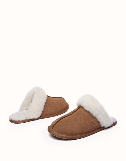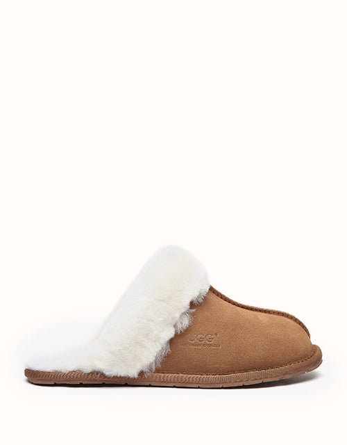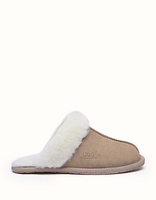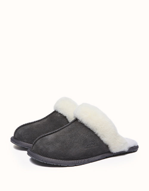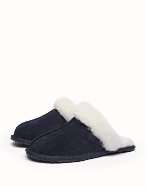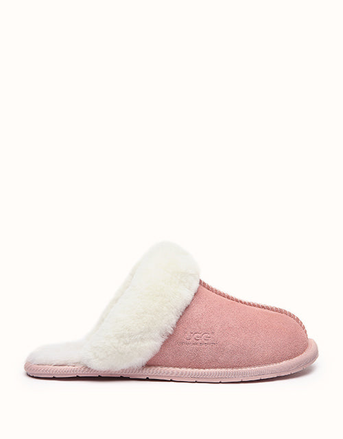 The classic Ugg Scuff Rosa Slippers are a unisex essential for cozy comfort at home. Made with environmental-friendly production, they feature a soft sheepskin exterior and Australian wool insole that naturally wicks away moisture, keeping feet warm, dry, and comfortable—perfect for winter evenings.