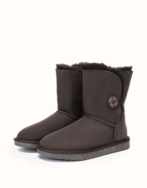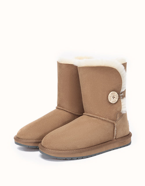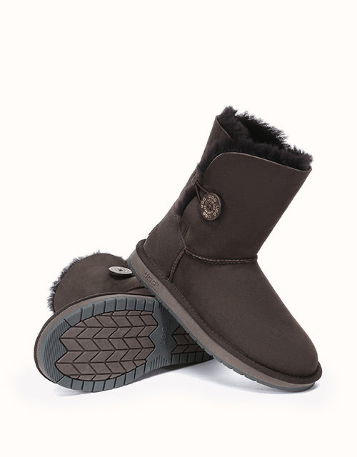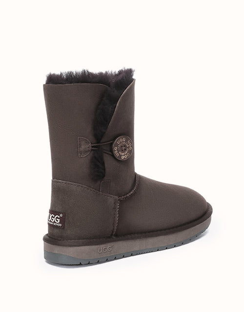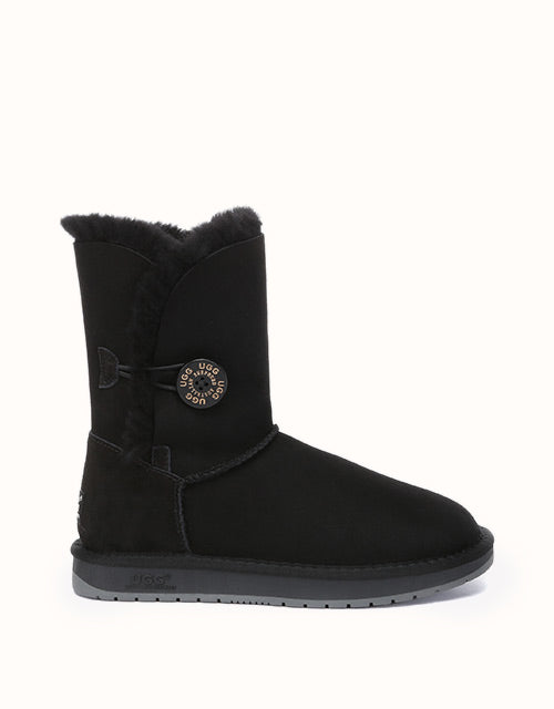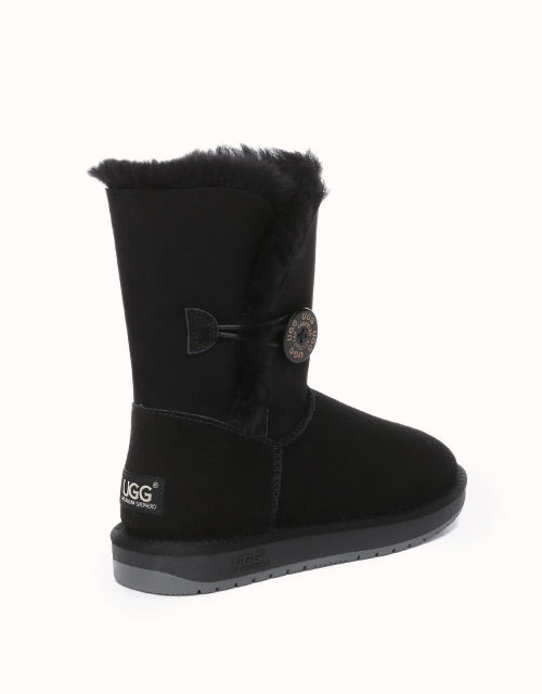 All-season comfort meets fashionable styling in these cute-as-a-button Australian Shepherd Ladies Short Button UGG Boots. They are suitable for indoor and outdoor wear, and the breathable twin-face sheepskin and suede construction will keep you cosy in winter and cool in summer.