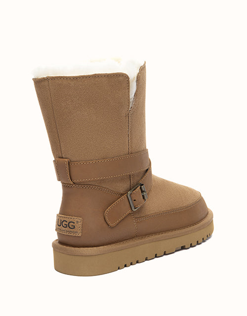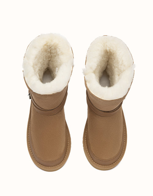 Crafted from soft cow suede and lined with natural sheepskin wool, the Halvik Short offers cozy warmth with a clean, everyday silhouette. Finished with a subtle side buckle and a lightweight EVA sole, it’s designed for effortless comfort from indoor lounging to casual outdoor wear.