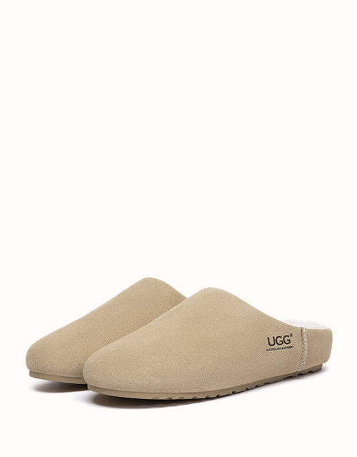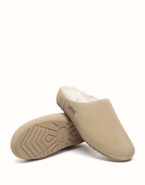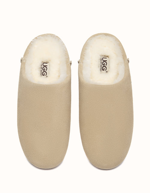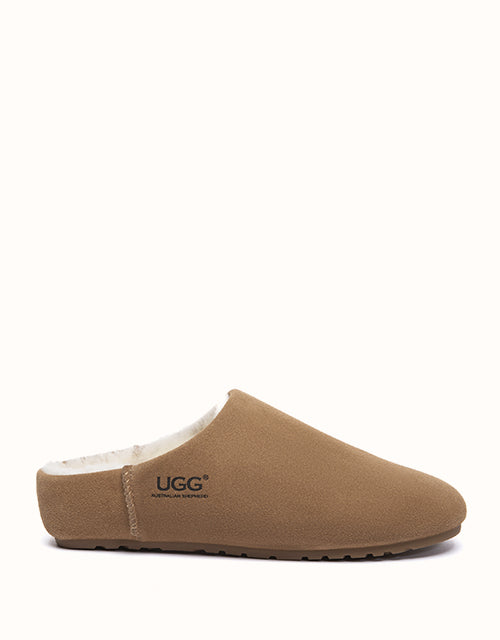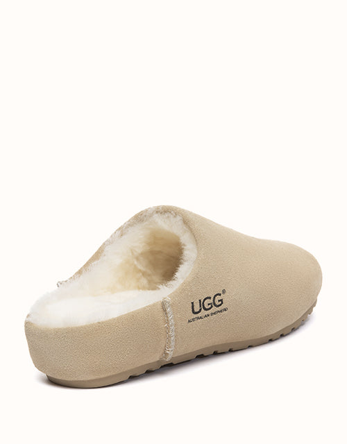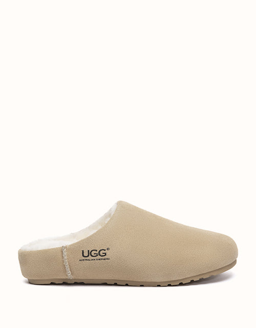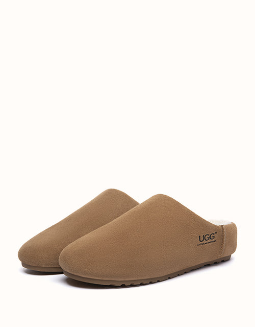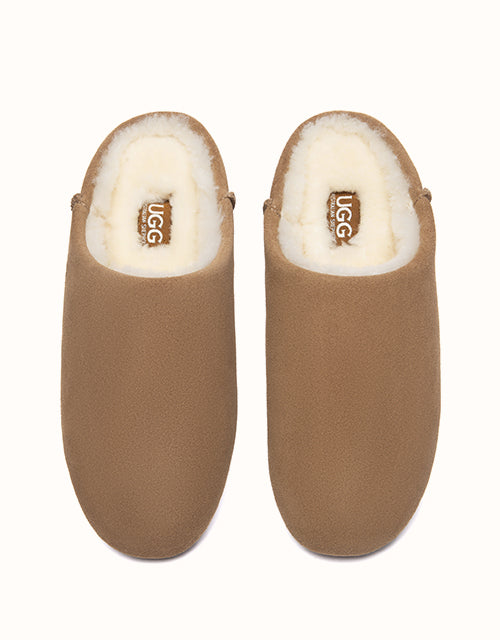 The AUSTRALIAN SHEPHERD® Somni Slippers feature a smooth cow suede upper and soft sheepskin wool lining for warm, cushioned comfort. A durable rubber sole offers steady grip for indoor wear, while the slip-on shape keeps them easy and relaxed for everyday use.