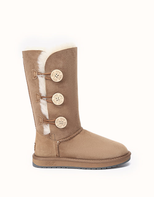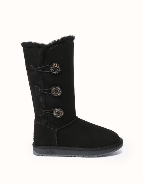 A stylish take on the Tall Classic features three UGG buttons with elastic-band closures. Lightweight double-layer sole that is both flexible and durable, and combined with hardened rubber to prevent slipping on slippery surfaces such as tiles or timber floors.
