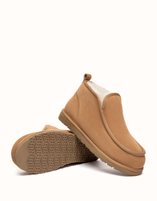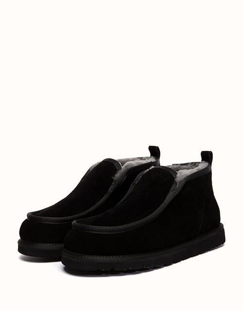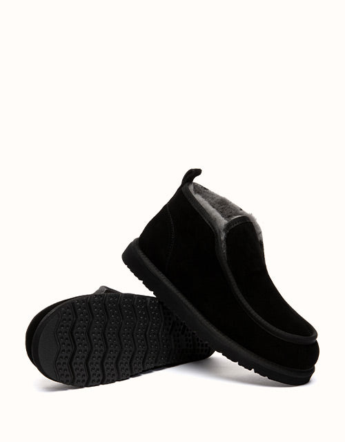 The Tavros ankle boot offers a clean, structured silhouette designed for everyday winter wear. Crafted from smooth cow suede and lined with plush sheepskin wool, it delivers reliable warmth, comfort, and effortless style for both indoor and outdoor use.