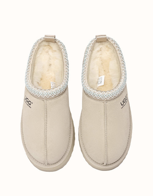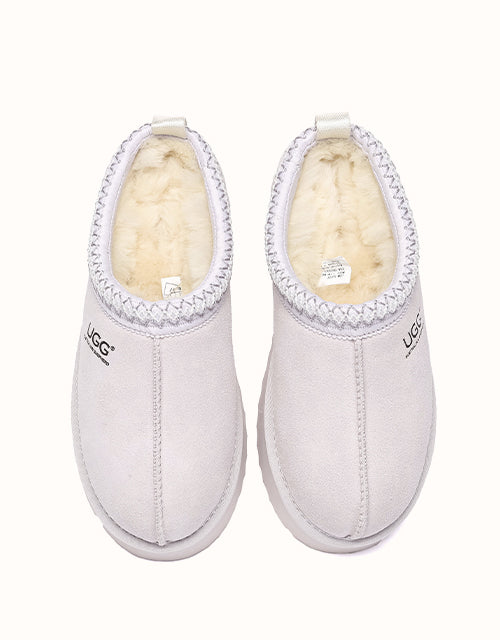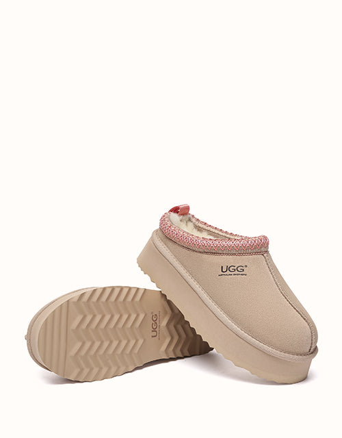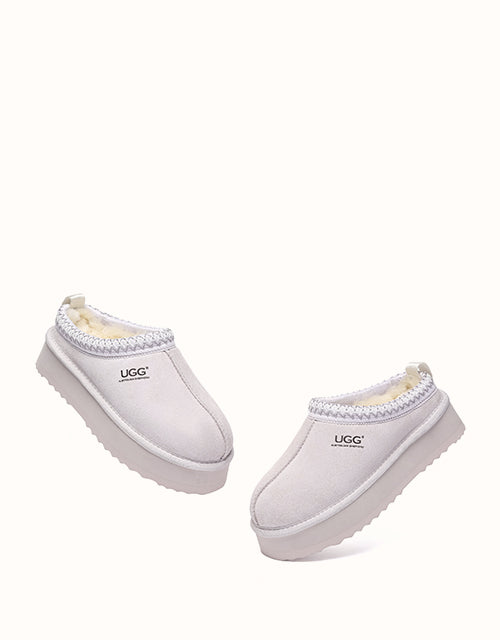 Experience everyday luxury with the Australian Shepherd Tay Platform Ugg Slippers. Crafted from breathable cow suede and lined with ultra-soft sheepskin wool, they deliver lasting comfort and warmth. A lightweight EVA rubber sole offers durability and grip, while the versatile colour range makes them perfect for any style.