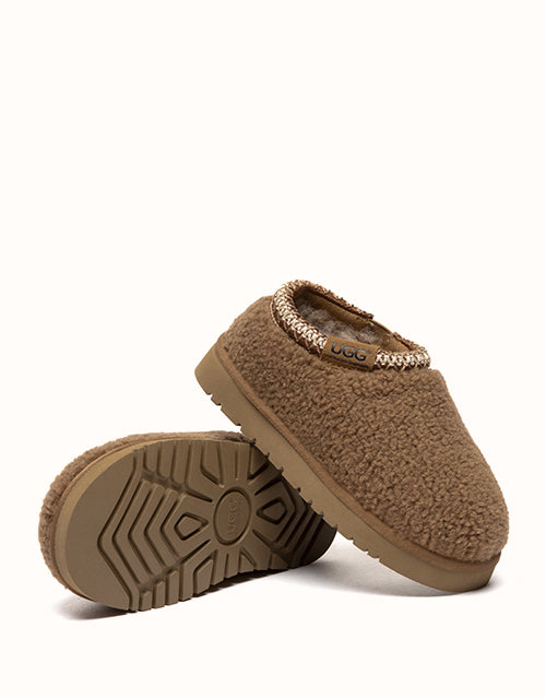 Soft, warm and easy to wear, the Australian Shepherd Tayla Kids Slippers are crafted with a plush faux fur upper and natural sheepskin wool lining. The breathable interior keeps little feet cosy, while the lightweight EVA sole offers support for both indoor play and quick outdoor steps. A simple slip-on design made for everyday comfort through the colder seasons.