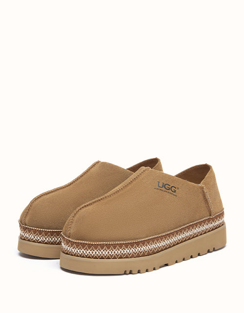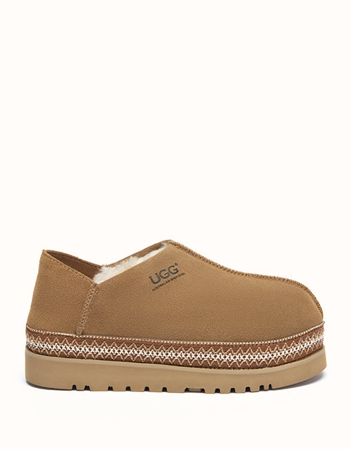 Clean and understated, the Tayven UGG Slippers are crafted from smooth cow suede with a plush sheepskin wool lining for natural warmth and comfort. Finished with subtle woven trim and a lightweight EVA sole, they’re designed for effortless everyday wear, indoors or out.