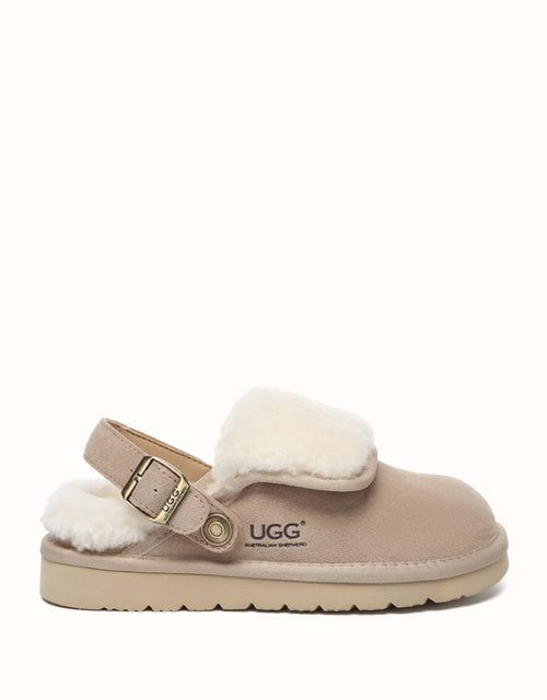 Slide into effortless style with the Australian Shepherd Tenley Platform Slingback Slippers. Offered in versatile shades of chestnut and sand, they pair effortlessly with a range of looks to match your style. Expertly made with premium sheepskin, they deliver exceptional warmth on chilly days, while the custom EVA sole enhances cushioning for all-day comfort. Featuring an adjustable strap that can be worn at the front or back, these slippers offer a secure and flexible fit.