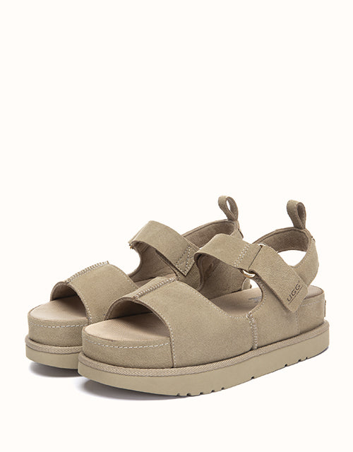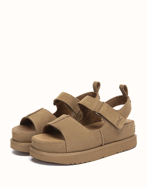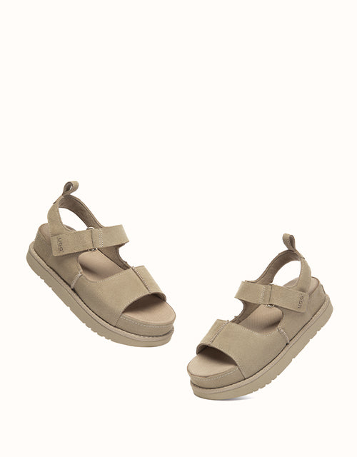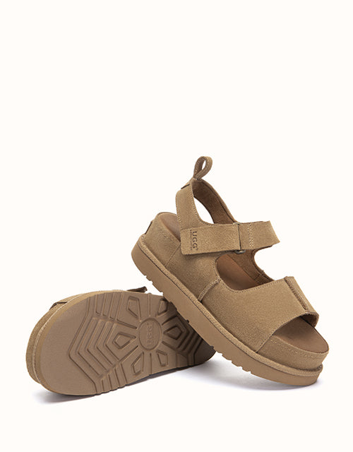 The Terral Slingback Platform Sandals are designed for balanced comfort and everyday versatility. Crafted from structured cow suede, the adjustable straps provide a secure, personalised fit, while the slingback design offers added stability for daily wear. Finished with a lightweight platform sole and breathable fabric footbed, they transition effortlessly from indoor comfort to casual outdoor styling.