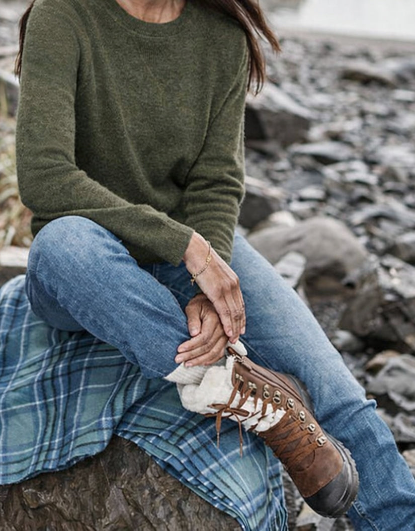 Take on winter with the EMU® Waterproof Lace-Up Hiking Boots. Crafted from waterproof leather with plush sheepskin lining, they offer warmth, breathability, and durability in rain or snow. The Vibram sole ensures grip on icy trails, while the lace-up alpine style with side zip and fold-over cuff combines rugged function with timeless charm.
