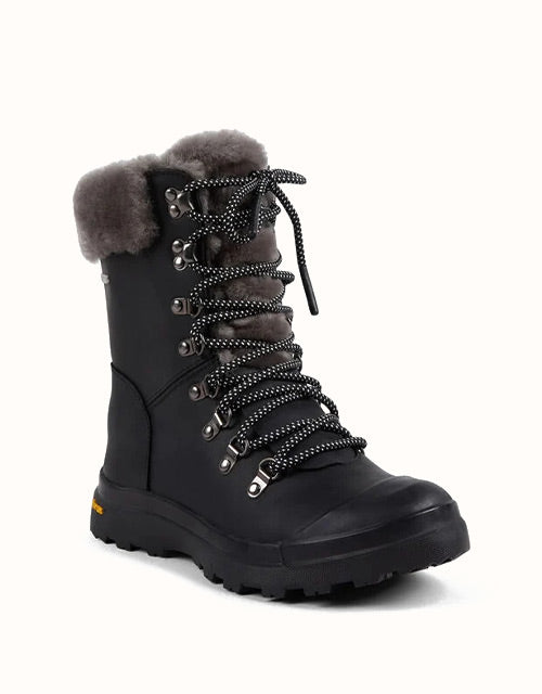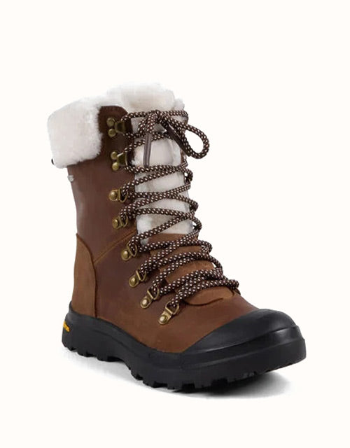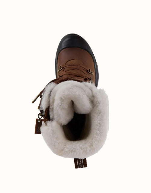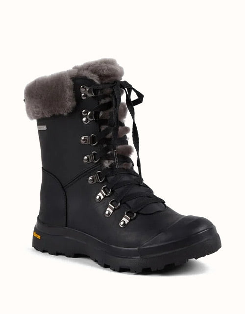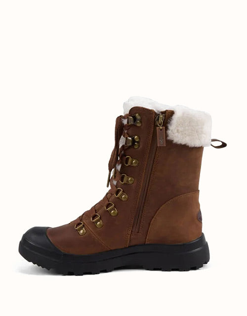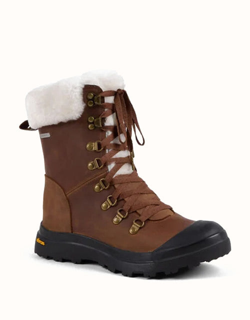 Take on winter with the EMU® Waterproof Lace-Up Hiking Boots. Crafted from waterproof leather with plush sheepskin lining, they offer warmth, breathability, and durability in rain or snow. The Vibram sole ensures grip on icy trails, while the lace-up alpine style with side zip and fold-over cuff combines rugged function with timeless charm.