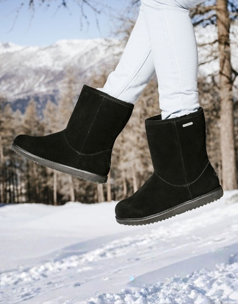 Crafted in Australia, the EMU® Paterson Lo Boots blend timeless style with function. Featuring waterproof suede and plush Australian sheepskin lining, they deliver warmth and comfort in rain or snow. A side zip ensures easy wear, while the sturdy sole provides secure grip for winter days.