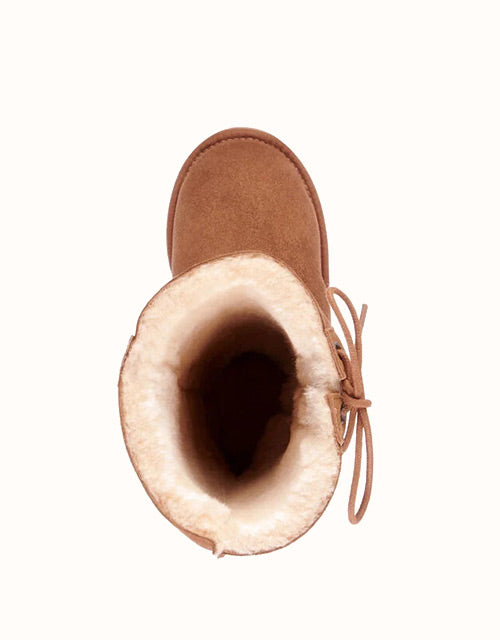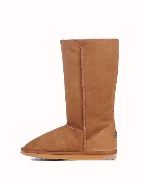 Stay warm and stylish with the EMU® High Lace Sheepskin Boots. Handcrafted in Australia from premium double-face sheepskin, they provide natural warmth, softness, and breathability. A water-resistant finish and cushioned EVA sole ensure comfort indoors or outdoors, while the tall lace-up chestnut design adds timeless winter style.