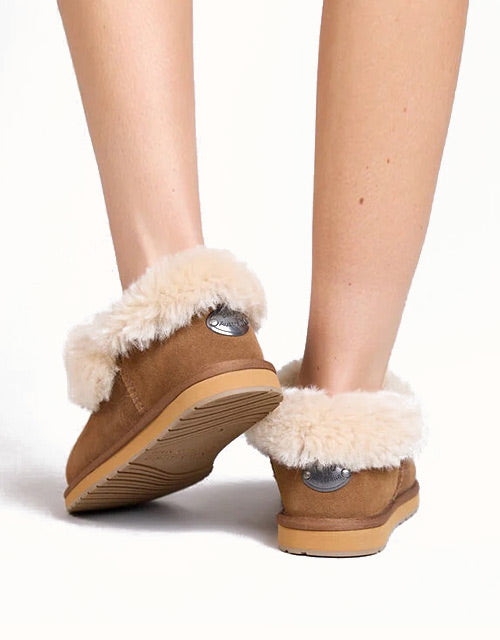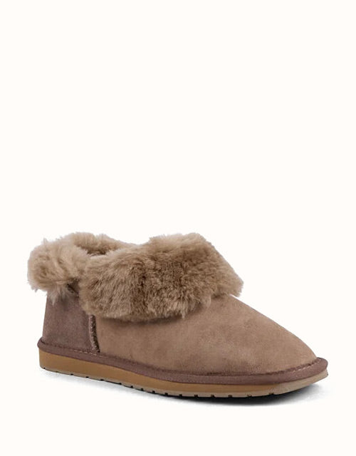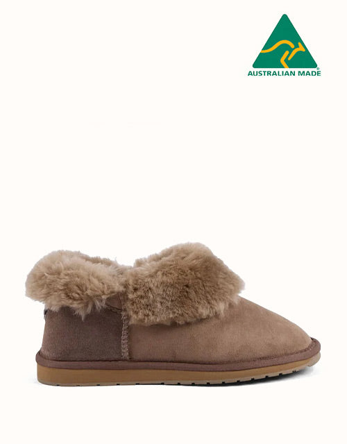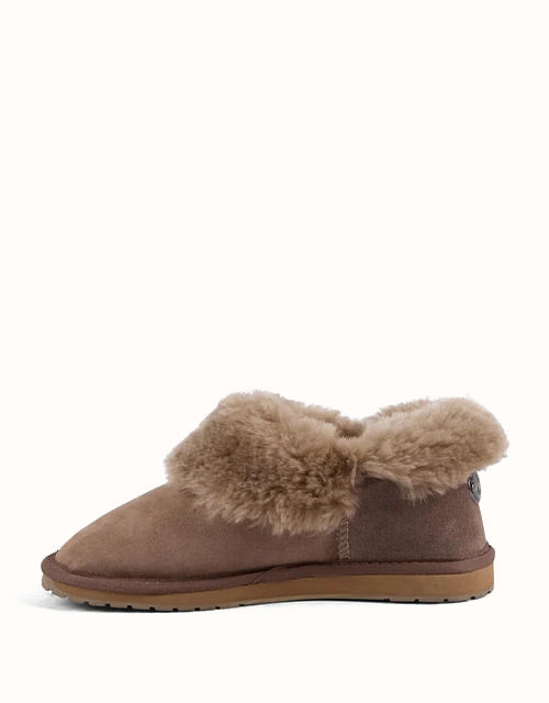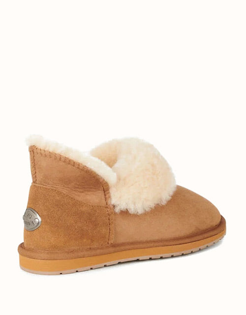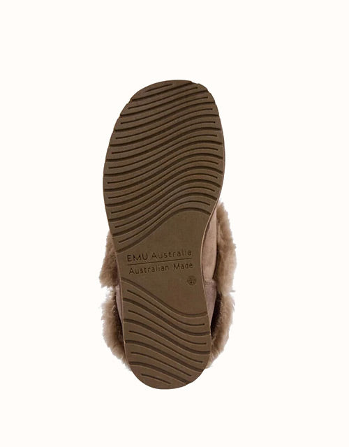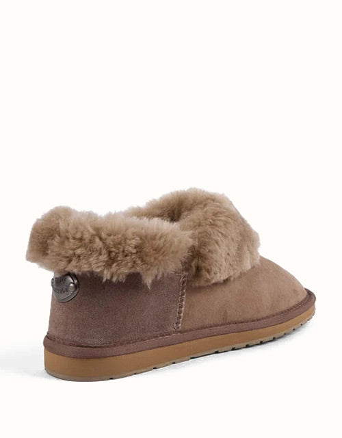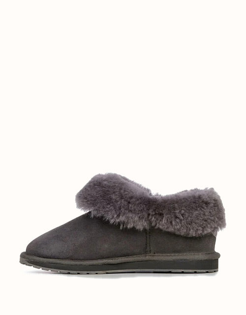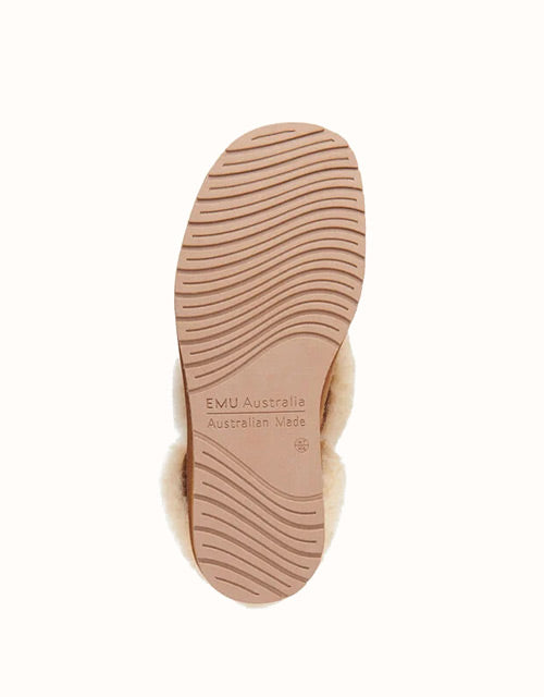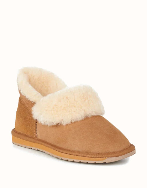 The EMU® Platinum Mintaro Slippers are handcrafted in Australia, staying true to authentic UGG slipper heritage. Made with premium double-face Australian sheepskin, they feature a plush wool lining that delivers natural warmth, softness, and breathability. With a fold-over cuff design and sturdy rubber sole, these slippers are versatile for both indoor and light outdoor wear.