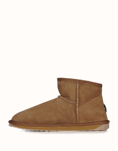 Crafted from premium double-faced sheepskin, these EMU Australia boots deliver unbeatable warmth, breathability, and all-day comfort. The soft sheepskin wool lining and insole provide a plush, cozy feel while naturally regulating temperature. Available in classic Chestnut, versatile Black, and elegant Mushroom, they offer effortless style for any occasion. Proudly made in Australia, these boots showcase expert craftsmanship and timeless quality, making them a must-have for comfort and durability.
