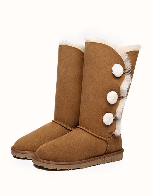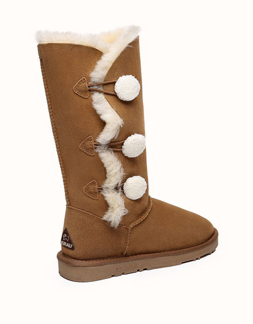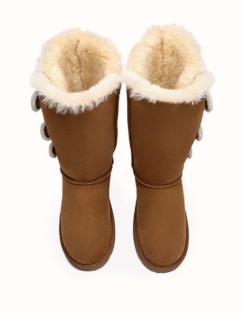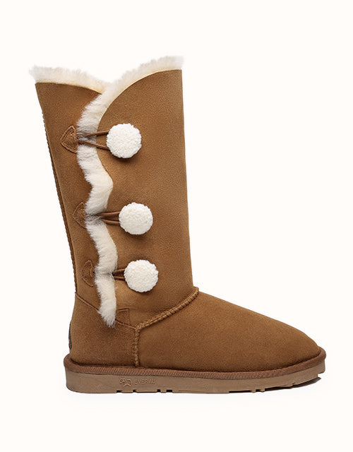 Some winter days you just want to stay inside and snuggle up under a blanket, but if you venture out into the cold - you’ll want to step out into the world with the Tall Triple Button Boots Aspen. The tallest version of this style comes with three plush little buttons, Double-Faced Sheepskin, and a stylish yet comfortable design - meaning you’ll never want to take them off!