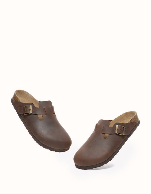 Designed with ergonomic features, these shoes incorporate a contoured footbed to ensure optimal comfort and support. The bionic heel cup provides stability and ankle protection, while the side arch support follows the natural curve of the foot, evenly distributing pressure for improved balance. Crafted with premium materials, paired with soft cushioning, breathable insoles, and a cork-latex footbed that molds to your feet over time. Stylish details include a premium Horse leather upper for a refined urban look, adjustable buckle straps for a modern touch, and a durable EVA and PVC outsole offering lightweight cushioning, durability, and superior grip.