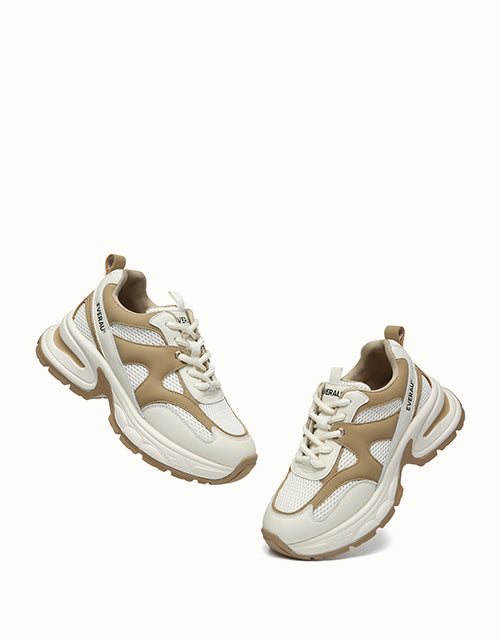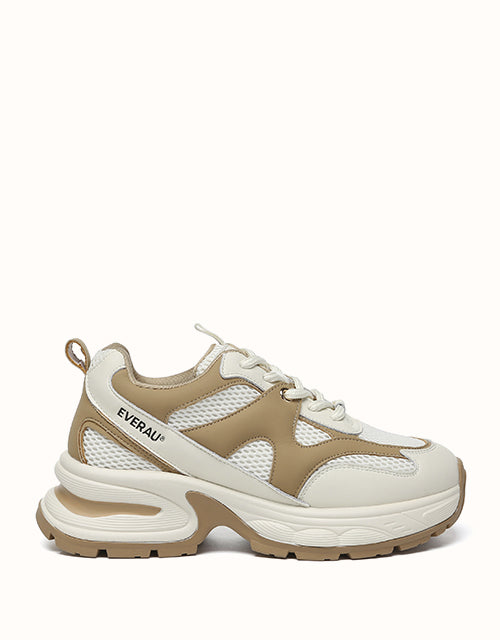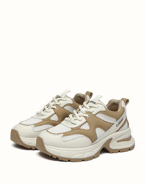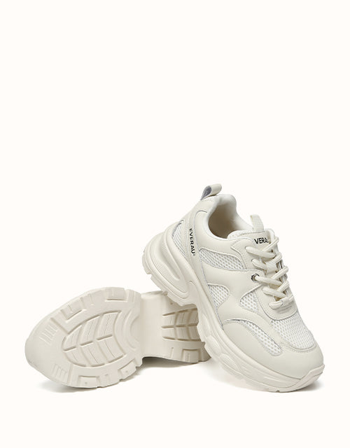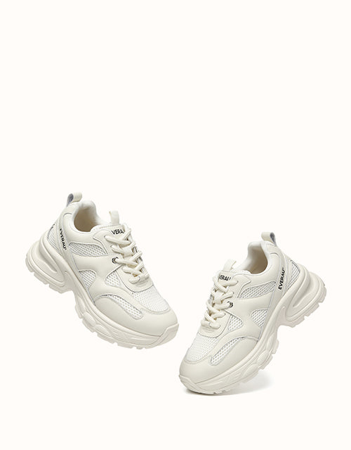 The Camille Chunky Sneakers combine modern styling with everyday comfort for city wear. Crafted with breathable mesh and split cow leather overlays, they offer lightweight structure and lasting support. The cushioned platform sole adds subtle lift and stability, making them an easy choice for long walks and daily activities.