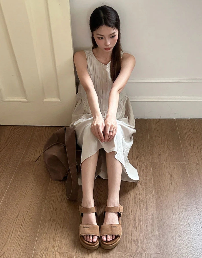 Featuring an open-toe design, these sandals combine adjustable buckle straps with premium leather for a touch of understated luxury. The hook-and-loop closures allow for effortless customization, ensuring a perfect fit across the instep. The suede-lined footbed is breathable and moisture-wicking, keeping your feet cool and comfortable even during extended wear. Built with a durable EVA sole, the boat-shaped base is designed for ultimate support, incorporating three strategically placed cushioning zones, reduces walking fatigue, and ensures every step feels effortlessly comfortable.